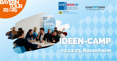 Zusammen mit dem Stellwerk18 machen wir dich im Ideenworkshop auch fit für die STARTUP TEENS Bayern Challenge 2026. Dort hast Du die Chance, deine Geschäftsidee einzureichen und Preisgelder von insgesamt 10.000 € abzuräumen!