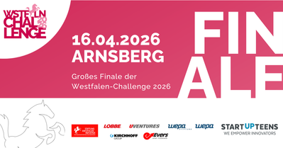 Am 16. April 2026 ist es endlich soweit. Die Finalist:innen der diesjährigen Westfalen-Challenge pitchen ihre eigenen Ideen vor unserer großartigen Jury. Dann entscheidet sich, welche Projekte es aufs Treppchen schaffen.