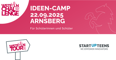 Wir machen Dich beim Ideen-Camp in Arnsberg fit für die Westfalen-Challenge 2026. Dort kannst Du Deine Geschäftsidee einreichen und Preisgelder in Höhe von insgesamt 10.000 € gewinnen.