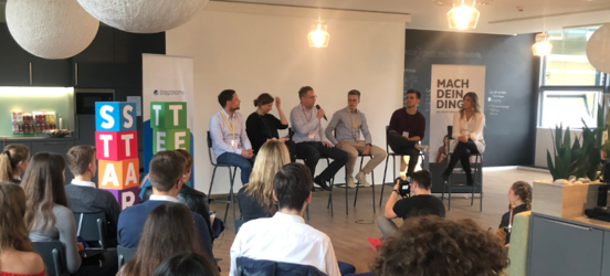 Neben Corinna Powalla (Modomoto), Peter Hornik (Digital Innovation Hub) und Stefan Wiezorek (StepStone) waren vor allem die beiden Startup Teens-Alumni Rubin Lind (Skills4School) und Nils Reichardt (Sharezone) besonders gefragt.