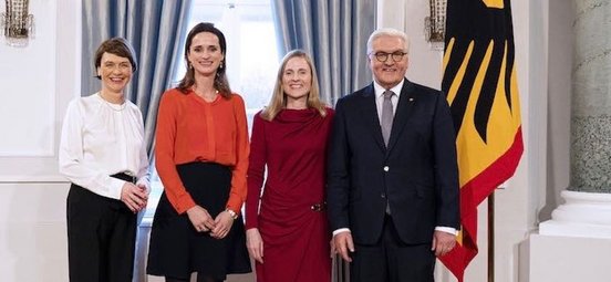 Die Unternehmerinnen Verena Pausder (Fox&Sheep) und Marie-Christine Ostermann (Rullko Großeinkauf) sind als Vertreterinnen der Non-Profit-Initiative STARTUP TEENS zum Neujahrsempfang ins Schloss Bellevue geladen. Dort ehren Bundespräsident Frank-Walter Steinmeier und seine Frau Elke Büdenbender rund 70 Bürgerinnen und Bürger aus allen Bundesländern und danken ihnen für ihr Engagement um das Gemeinwohl. Neben den Geehrten wohnen auch Repräsentanten des öffentlichen Lebens der Zeremonie bei.