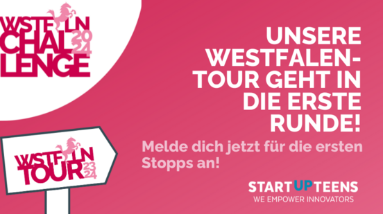 Du bist ein junges westfälisches Talent und tüftelst an unternehmerischen Ideen? Oder hast Du Bock mehr über Gründung und Startups zu erfahren? Dann sei unbedingt bei unserer Westfalen-Tour dabei! Wir machen an vielen Orten in Westfalen Station, schaffen für Dich Touchpoints zum Gründen und unterstützen Dich bei der Ideenfindung live vor Ort. Egal, welche Schule Du besuchst oder welche Kenntnisse Du schon hast - wie immer kostenfrei und sozial inklusiv.